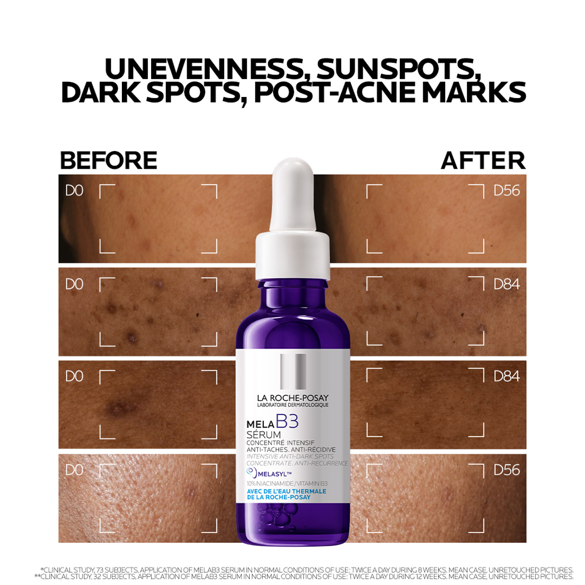 • سيروم لاروش بوزيه ميلا بي 3 هو مصحح قوي للبقع الداكنة مصمم لتقليل ظهور التصبغات وتحسين إشراق البشرة.