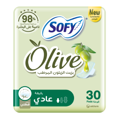 سوفي فوط صحية بزيت الزيتون بحجم عادي تأتي في عبوة تحتوي على 30 قطعة. تمتاز هذه الفوط بتركيبتها المميزة التي تحتوي على زيت الزيتون، والذي يساعد في ترطيب البشرة وحمايتها. توفر الفوط حماية موثوقة وامتصاصاً فعالاً مع لمسة ناعمة على البشرة، مما يجعلها مثالية للاستخدام اليومي.