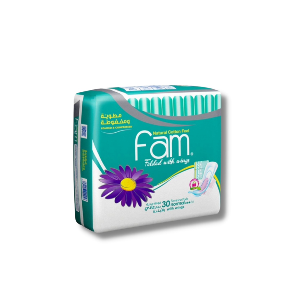 استمتعي بثقة تامة طوال أيام الدورة الشهرية مع فوط فام النسائية. تتميز بطبقة علوية ناعمة ومسامية تمتص السوائل بسرعة وتوفر حماية فائقة ضد التسربات. الأجنحة الجانبية المرنة تضمن ثبات الفوطة في مكانها، مما يمنحك راحة تامة طوال اليوم. تصميمها الرقيق والرفيع يجعلها مريحة للغاية ولا تشعرين بوجودها.