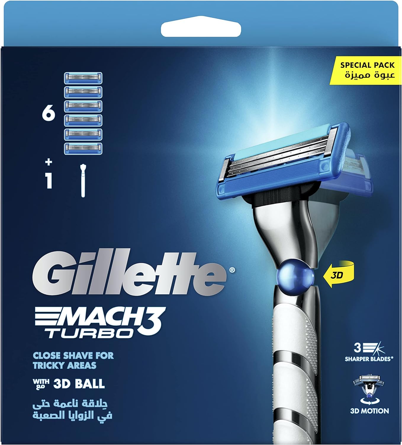 ماكينة حلاقة جيليت ماك 3 تيربو ثلاثية الأبعاد لحلاقة دقيقة في المناطق الصعبة