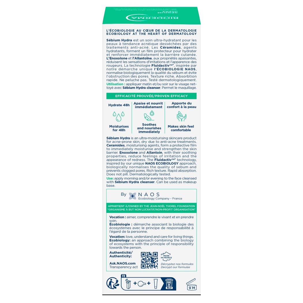 بيوديرما سيبيوم هيدرا كريم مرطب يغذي حيث يحتوي علي العناصر الغذائية التي تحتاجها البشرة لتشعر بالنعومة وتبدو أصغر سناً. ويحتوي علي مركبات طبيعيه تعملي علي الترطيب العميق للبشرة تكافح المكونات النشطة المرطبة وإعادة الهيكلة عملية التقشر وتخفف الشعور بالضيق.