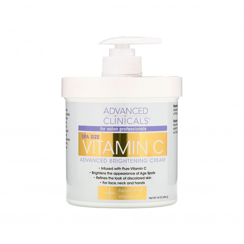 كريم تفتيح فيتامين سي من أدفانسد كلينيكالز بحجم كبير (454 جرام)، صمم خصيصاً لإعادة إشراق البشرة ومكافحة علامات التقدم في العمر. مناسب لجميع أنواع البشرة بما في ذلك الدهنية، الحساسة، والجافة. يمكن استخدامه على الوجه، الرقبة، الجسم، وحتى تحت العينين.