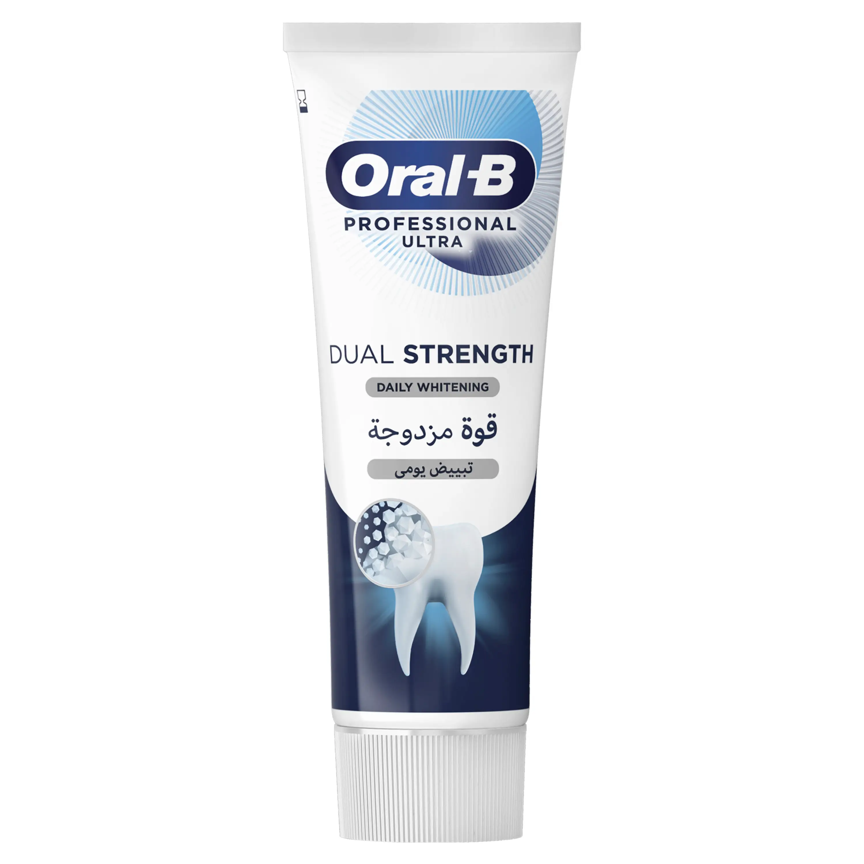 حافظ على أسنان صحية وقوية مع معجون أورال-بي بروفيشنال ألترا دوال سترينغث ديلي وايتننغ، حيث يحمي هذا المعجون الاحترافي المينا من فقدان كثافتها في المستقبل، مع إعادة بناء كثافة الأسنان بشكل فعال والمساهمة في إيقاف التسوّس في مراحله المبكرة، ما يسهم في وقاية الأسنان من أي مشاكل على المدى الطويل. ويمتاز هذا المعجون بقدرته على تبييض أسنانك بلطف عبر إزالة البقع السطحية، كي تتألق بابتسامتك يومًا بعد يوم مع العلامة التجارية الأولى التي يوصي بها أطباء الأسنان في مختلف أنحاء العالم، أورال-بي.