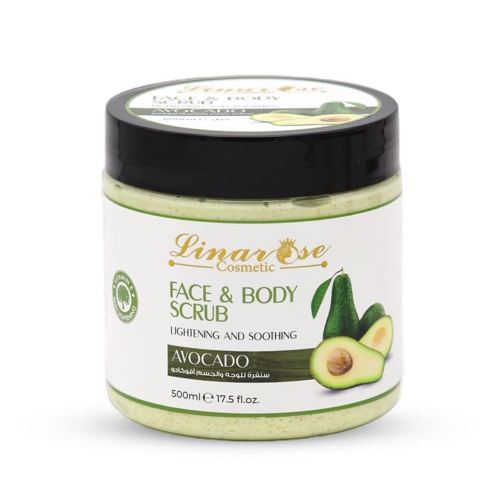 لينا روز صنفرة للوجه والجسم بالأفوكادو - 500 مل هي صنفرة طبيعية لطيفة على البشرة تحتوي على مستخلصات الأفوكادو وفيتامينE. تساعد هذه المكونات على تنظيف البشرة بعمق، وإزالة خلايا الجلد الميتة، وتفتيح البشرة، وتعزيز نعومتها، وتغذيتها، وحماية البشرة من الجفاف.
