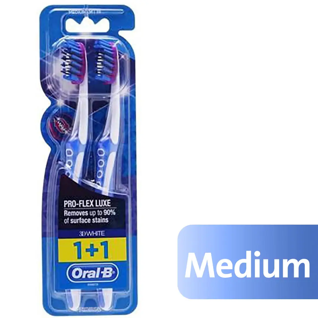 تم تطوير فرشاة أسنان اورال بى فرشة أسنان 3D وايت باستخدام تقنية Pro-Flex ، وهي تتميز بجناحين مرنين يمكن ضبطهما بشكل مستقل بحيث ينثنان على أسنانك ولثتك الفريدة للمساعدة في تنظيف المنحنيات والخطوط.