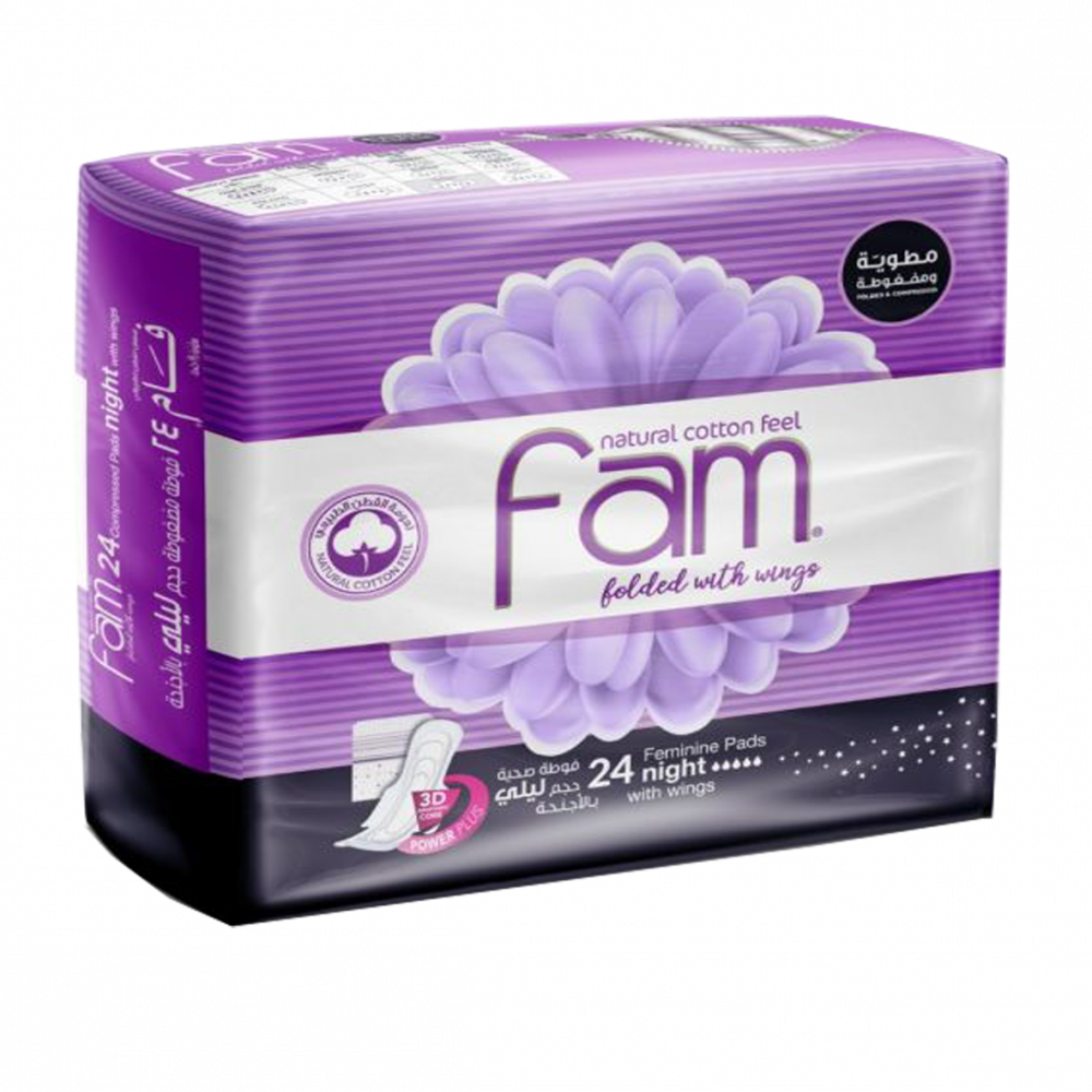 لا يوجد بها مواد عطرية أو مواد كيميائية تسبب روائح كريهة فهي تمتص الروائح. عبوات فام بنفسجي يوجد بها 24 قطعة بسعر اقتصادي مناسب للجميع. تبقى الفوطة جافة تماماً حتى بعد ارتدائها لفترات طويلة وامتصاصها لأي كمية من السوائل. فوط فام مريحة جداً مهما طالت مدة ارتدائها فهي مزودة بسطح ذات ملمس قطني ناعم لا يسبب التهيج.