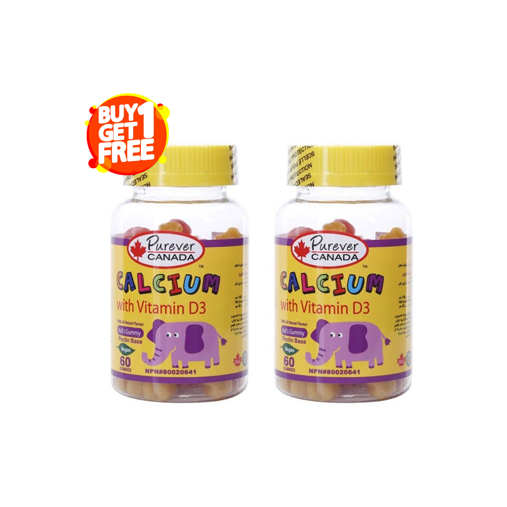 بيور ايفر كالسيوم حلوي جيلاتينية للاطفال غني بفيتامن د 60 قطعه 1+1 هدية
