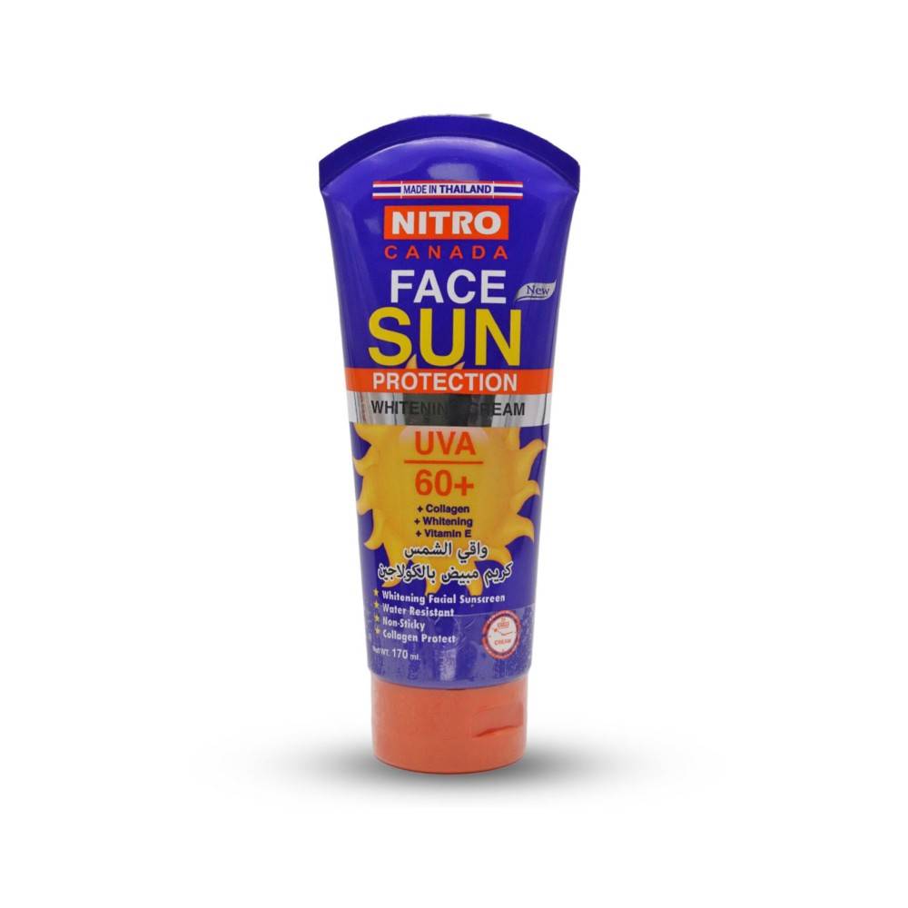 واقي الشمس كريم التبييض بالكولاجين بعامل حماية 60 - 170 مل من نيترو كندا الوصف: كريم واقي شمس ومفتح للبشرة يحتوي على مواد طبيعية فعالة، غني بالكولاجين وفيتامين E. يتميز بتركيبته المقاومة للماء وغير اللزجة، حيث يحمي البشرة من أشعة الشمس الضارة، ويقلل من التصبغات والبقع الجلدية، ويفتح لون البشرة بفضل مادة الكولاجين.