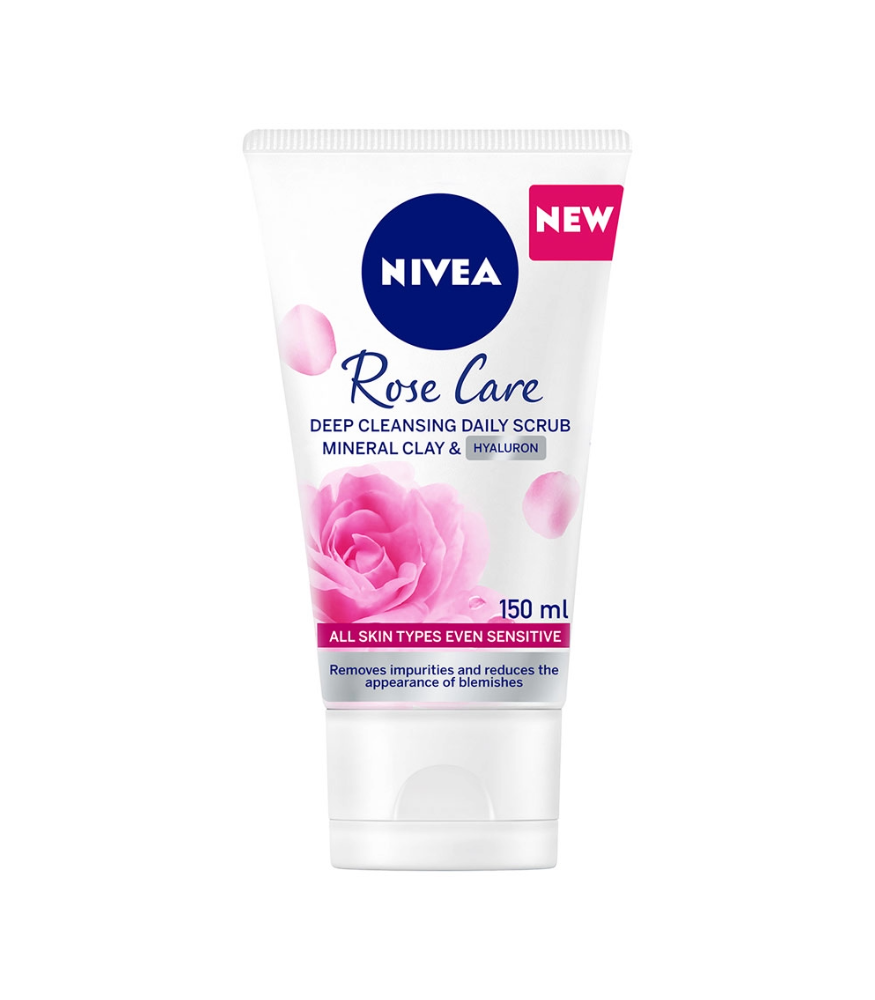 مقشر الوجه اليومي للتنظيف العميق بالورد من نيفيا بتركيبة غنية بالطين المعدني والهيالورون والفوائد المعروفة لمضادات الأكسدة وماء الورد العضوي. ينظف المسام المسدودة بعمق ويشدها وينقي البشرة دون تجفيفها كما يزيل الشوائب ويساعد على تقليل ظهورها للحصول على بشرة نضرة، مناسب لجميع أنواع البشرة حتى الحساسة
