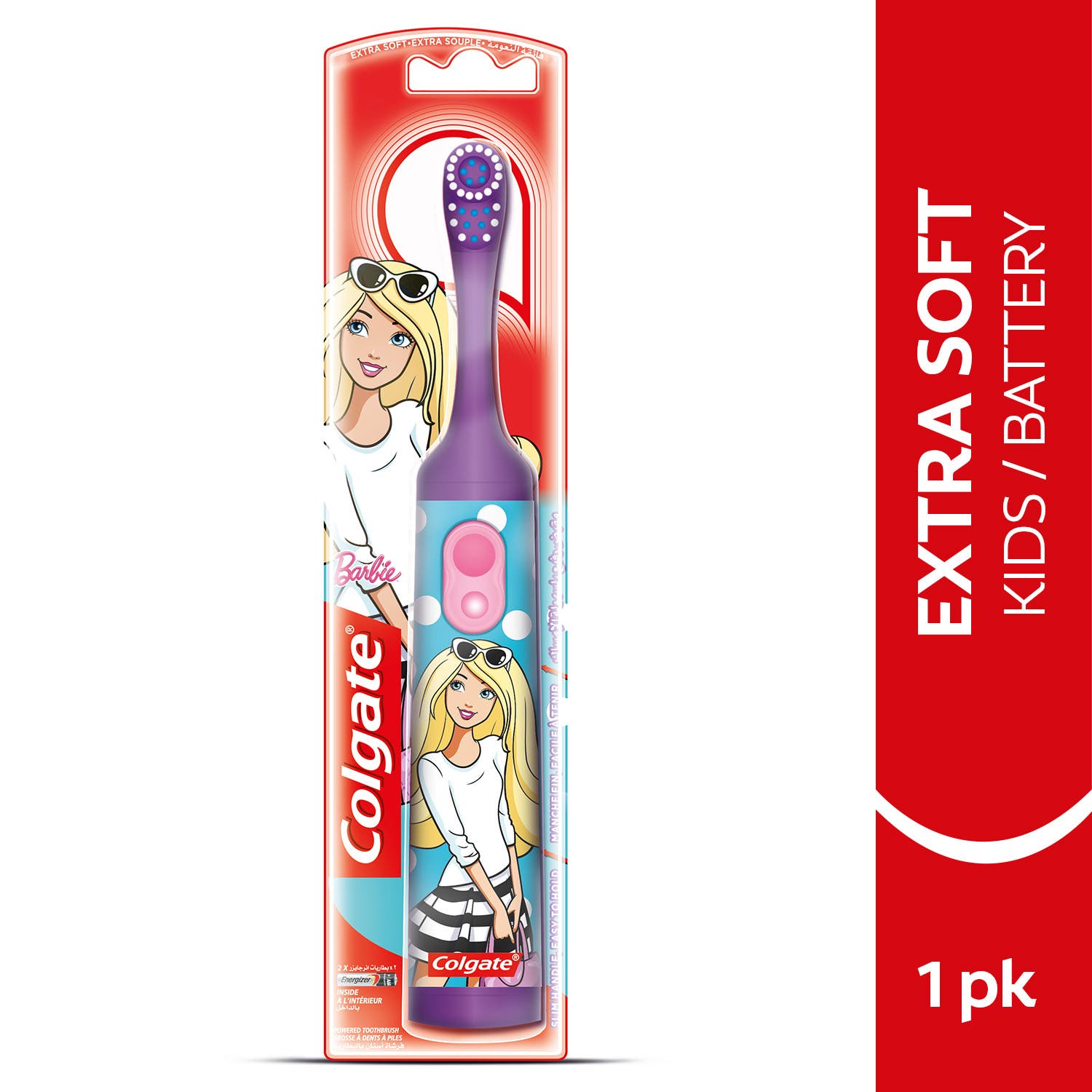 فرشاة أسنان كولجيت باربي بالبطارية هي فرشاة أسنان تجعل تنظيف الأسنان فعالاً وممتعاً! تنظف الأسنان وتزيل الترسبات بسهولة.