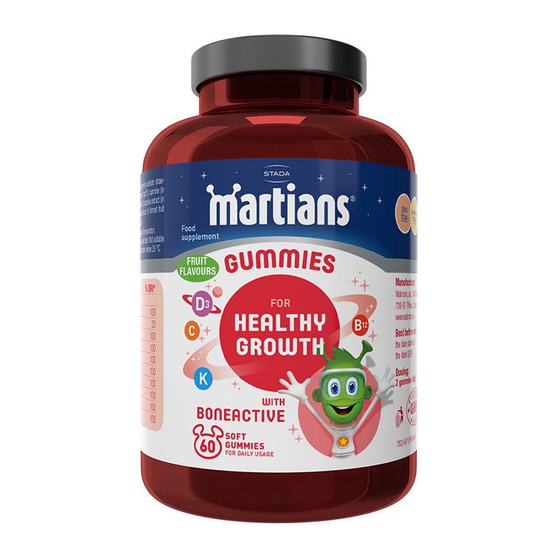 منتج جيلاتين لذيذ يحتوي على جرعة يومية موصى بها من الفيتامينات والمعادن الأساسية للنمو الفسيولوجي السليم وتطور الأطفال. تحتوي على مركب بون أكتيف الذي يتكون من اثنين من المواد الفعالة - فيتامين د وفيتامين ك - الضروريان للنمو والتطور السليم لعظام الأطفال.