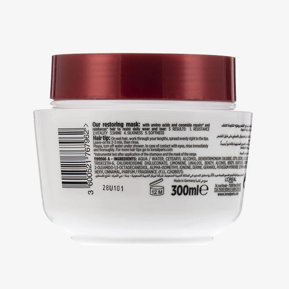ماسك لوريال إلفيف توتال ريبير 5 300 مل يوفر تغذية مكثفة للشعر التالف الذي يصعب التحكم فيه. يقوي ويقوي ألياف الشعر من الجذور. يجعل الشعر صحيًا ومملسًا وناعمًا ، إلى جانب تنشيط مظهره الباهت.