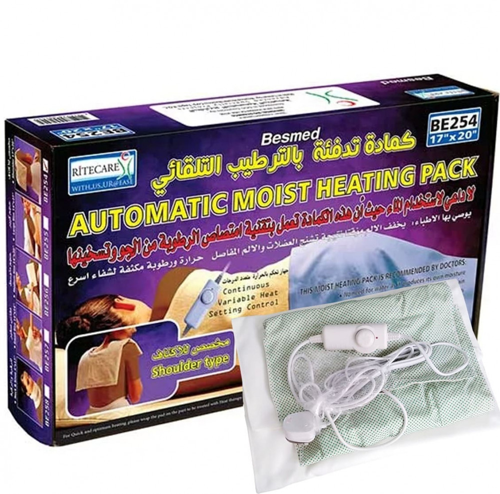 رايت كير كمادة تدفئة بالترطيب التلقائي للكتف ( BE254 ) RITE CARE BESMED BESMED MOIST HEATING PAD SHOULDER TYPE 17×20 وسادة تدفئة كهربائية اوتوماتيكية بطريقة الترطيب التلقائي يعمل على تخفيف الم الجسم بالحرارة. يعمل بالكهرباء بتقنية امتصاص الرطوبة من الجو.