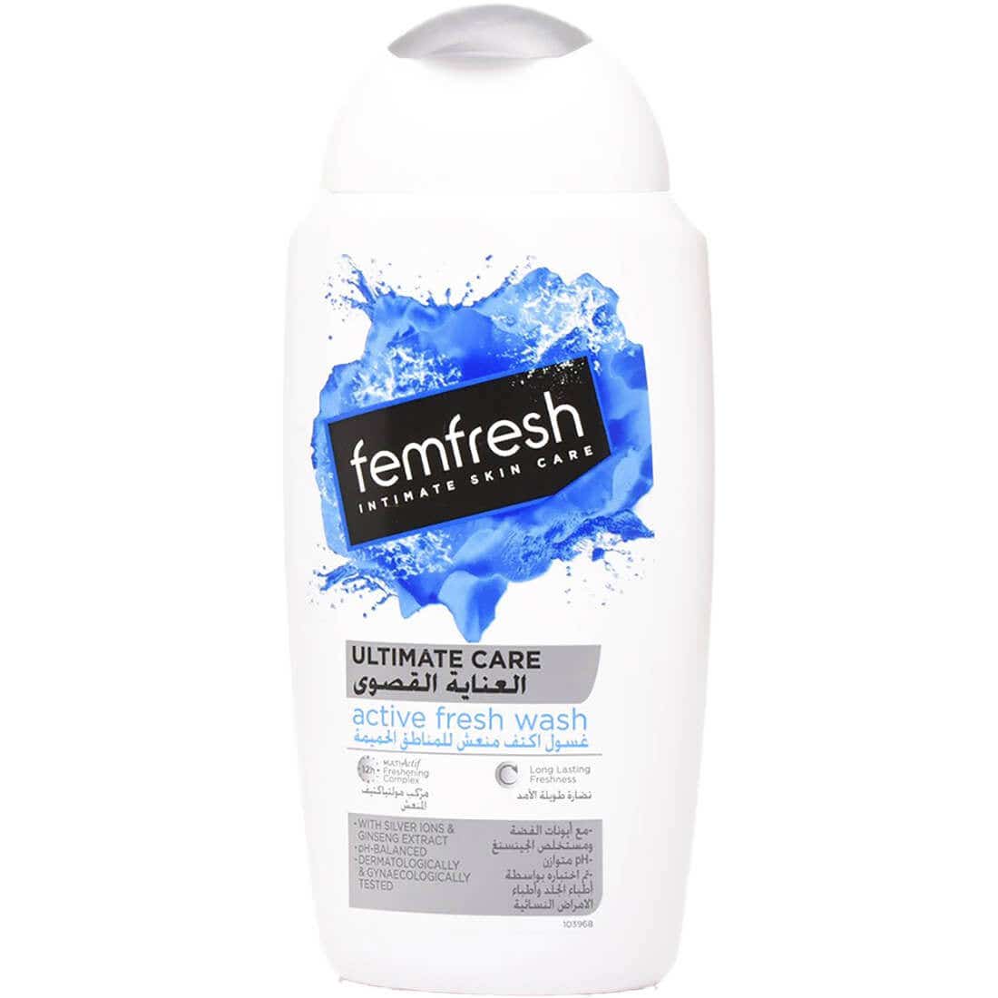 · فيم فريش غسول أكتف منعش للمناطق الحميمة 250 مل يمنح جسمك راحة كاملة حول المنطقة الحميمة.