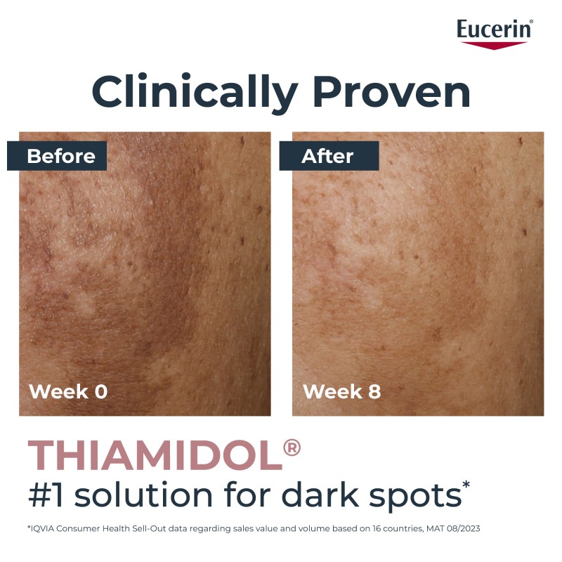 تجنب ملامسة العينين إذا حدث ملامسة، اشطف فورًا بالكثير من الماء ضع كل منتج من منتجات Eucerin مرة واحدة يوميًا لا تستخدم ما يصل إلى أربع تطبيقات يوميًا من المنتجات التي تحتوي على Thiamidol.