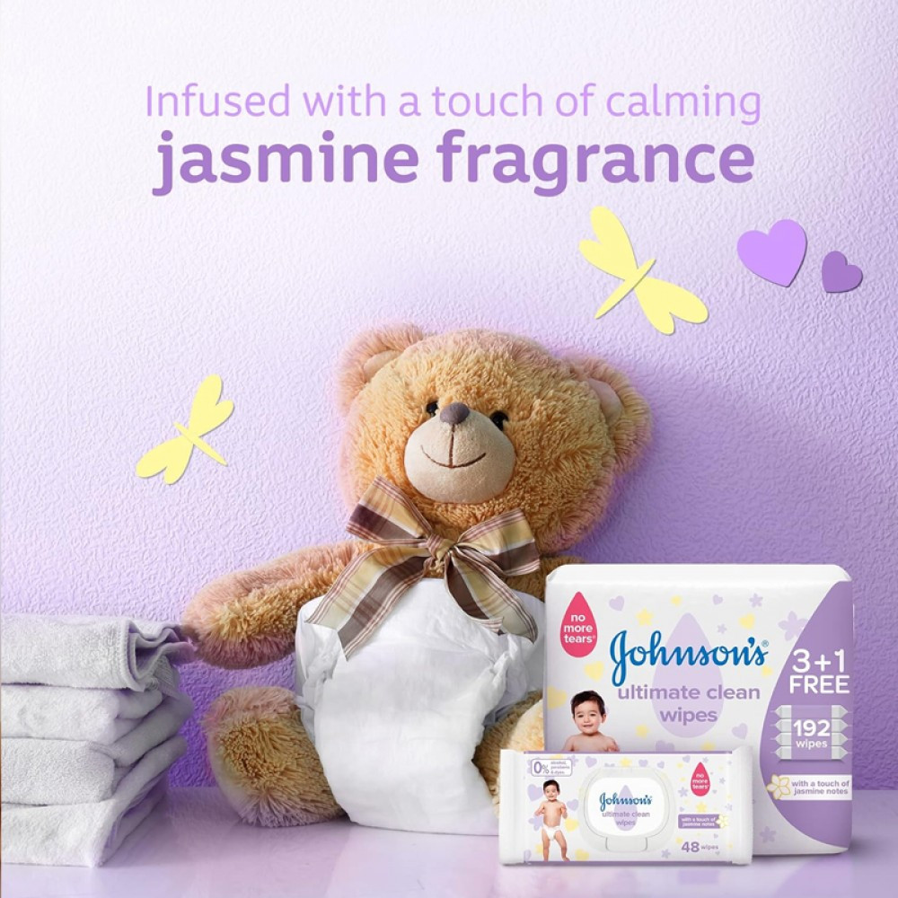 تتميز مناديل النظافة المثالية للأطفال من جونسون بكونها أكبرحجماً وأكثر سمكاَ وهي لطيفة لدرجة استخدامها بشكل متكرر على بشرة الطف بما في ذلك مقعدته ويديه و وجهه الرقيق دون أن تترك أثراً غير مرغوب فيه. تتميز مناديل النظافة المثالية للأطفال من جونسون بتركيبتها التي لا تسبب الحساسية، وهي تحتوي على تركيبة لا دموع بعد اليوم الفريدة. إنها أكبر بـنسبة ٣٠% لكي تحافظ على نظافة طفلك النشيط وخصوصاَ في أوقات الوجبات و الزحف المليئة بالفوضى. مناديل النظافة المثالية من جونسون ستساعدك في التعامل حتى مع أكبر قدر من الفوضى و الأوساخ. الطفل عند تناوله الطعام واستكشافه لما حوله وهو يزحف كما أنها أكثر سماكة لكي تنظف مؤخرته قدراً أكبراً من الأوساخ بفعالية ولطف. تم إضافة لمسة عطر مميز من زهور الياسمين إلى مناديل النظافة المثالية للأطفال من جونسون وهي خالية من الكحول والبارابين والأصباغ، وتتميز بكونها ذات درجة حموضة pH متوازنة فتترك بشرة الطفل ناعمة وصحية .منتجات جونسون للأطفال، تثق بها الأمهات منذ أكثر من ١٠٠ عاما!المواصفات: