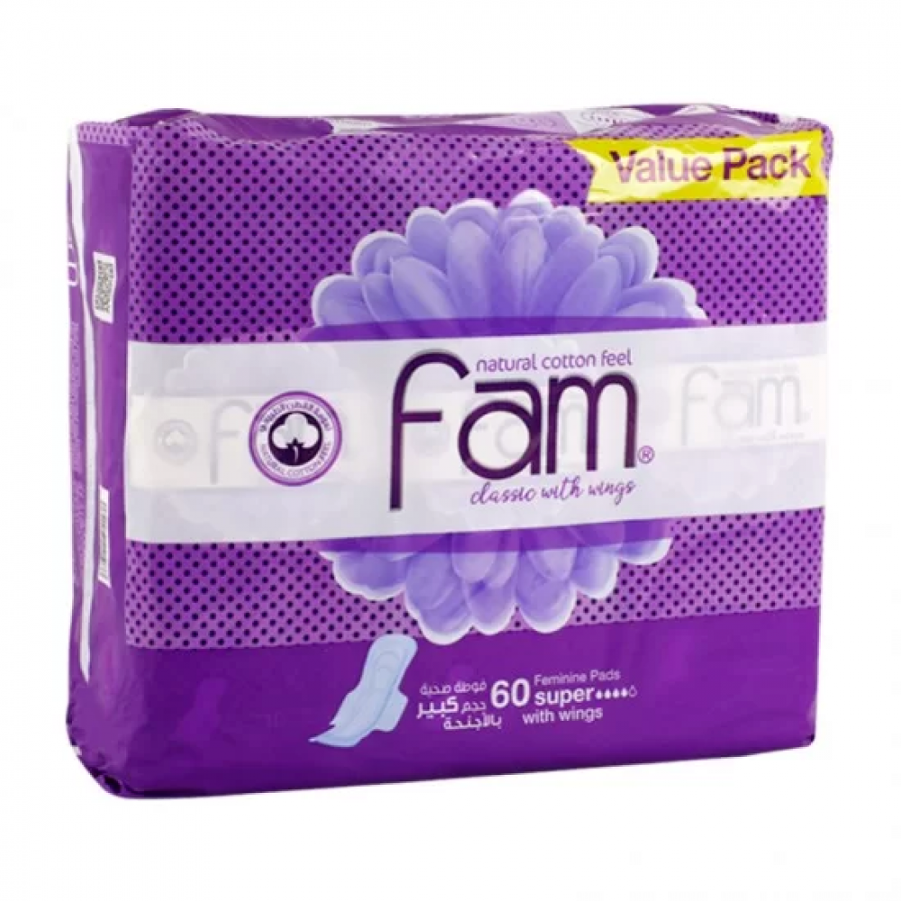 تمتاز فوط فام بالأجنحة حجم كبير بملمس ناعم يقيكي يومياً من الالتهابات الداخلية والخارجية. ملمسها يشبه ملمس القطن الطبيعي ومزودة بمضادات لتكون البكتيريا والفطريات. يوجد بها طبقة علوية جافة باستمرار حتى بعد امتصاصها الكثير من السوائل. فوط فام حجم كبير تمنع أي تسريبات من كل الاتجاهات لضمان حمايتك وأنتِ خارج المنزل.
