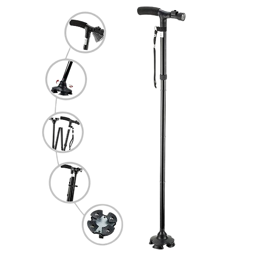 تساعد إضاءة الكشاف الموجودة في أعلى العكاز على كشف الطريق أمام المستخدم في المناطق المعتمة أو عند استخدام العكاز ليلًا لتفادي حوادث فقدان التوازن والسقوط والإصابات.