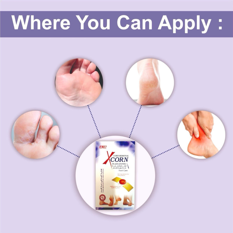 تحتوي لاصقات إزالة مسامير القديم للعناية بالقدم من إكس كورن على قرص قابل للإزالة في المنتصف لتغطية مسمار أو تورم القدم، وتحقق النتيجة المرغوبة خطوة بخطوة، ضع الرقعة الطبية المستديرة على مسمار القدم. هذا المنتج مناسب للأشخاص الذين يعانون من الألم وعدم الراحة الناجمة عن مسمار القدم والثآليل ويمكن أن يحقق العلاج بالضغط البارد ويخفف الألم.