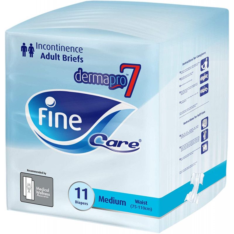 توفر حفاضات البالغين من فاين كير امتصاص وراحة مثالية طوال النهار والليل للرجال والنساء الذين يعانون من سلسل البول بشكل خفيف إلى كبير. إنه مصممة خصيصًا لملائمة منحنيات الجسم وحماية البشرة من التهيج الذي يسببه الحفاض باستخدام تكنولوجيا ديرما برو 7 الحاصلة على براءة اختراع. لب مزدوج الطبقات فائق الامتصاص