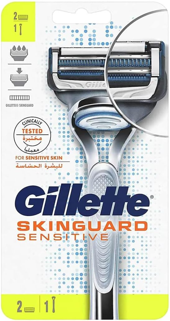 تعد ماكينة الحلاقة سكينغارد سينسيتف من جيلايت ماكينة الحلاقة الأولى من جيلايت المصممة خصيصًا للرجال ذوي البشرة الحساسة والعرضة لندب الحلاقة. واقي البشرة الفريد سكين جارد موضوع بين الشفرات لحلاقة الشعر وحماية البشرة. يعمل على تقليل الشد والسحب ويقص الشعر من مستوى البشرة مما يمنع تهيجها ونمو الشعر تحتها.