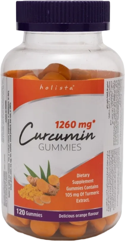 هوليستا كركمين 1260 ملجم مستخلص الكركم الخام لكل علكة، العبوة تحتوي على 120 علكة غنية بالكركمين،