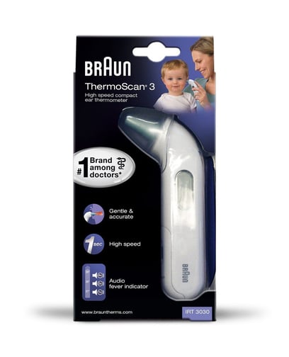 جهاز قياس الحرارة براون ITR 3030 هو جهاز رقمي لقياس درجة الحرارة عن طريق الأذن، وهو أحد أشهر أجهزة قياس الحرارة على مستوى العالم. يتميز الجهاز بدقة عالية وسهولة الاستخدام، وهو مناسب لجميع أفراد الأسرة، بما في ذلك الأطفال الرضع. دقة عالية: يتميز الجهاز بدقة عالية في قياس درجة الحرارة، حيث تبلغ الدقة ±0.2 درجة مئوية.
