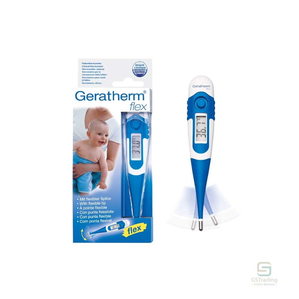 جهاز قياس الحرارة المرن جيراثيرم فليكس لايت بلو (GERATHERM FLEX LIGHT BLUE) هو جهاز ألماني مرن عالي الجودة. يتميز بطرف معدني مرن يسهل عملية القياس والحركة. يعمل بنظام الديجيتال، وهو الطريقة الأكثر دقة في أجهزة قياس درجة الحرارة. يحتوي على جرس إنذار وتنبيه في حال ارتفاع درجة الحرارة بشكل ملحوظ.