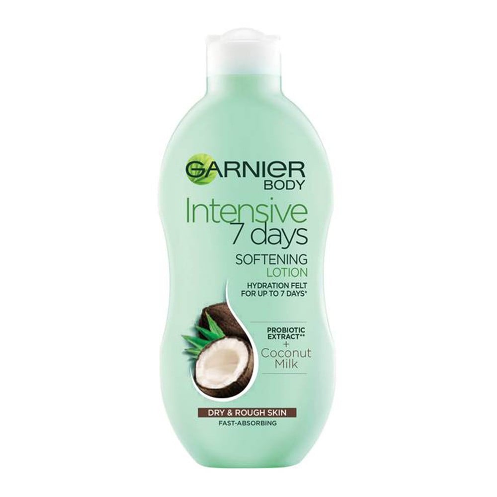 غارنييه انتنسيف 7 دايز لوشن مرطب للجسم بحليب جوز الهند - 400مل: يوفر إحساساً وترطيباً طويل الأمد لمدة تصل إلى 7 أيام. هذه التركيبة للبشرة الجافة والخشنة غنية بجزء من البروبيوتيك ، مستوحى من العناصر النشطة الموجودة في الزبادي ، لتقوية الحاجز الطبيعي الواقي للبشرة والمساعدة في الحفاظ على ترطيب طويل الأمد.