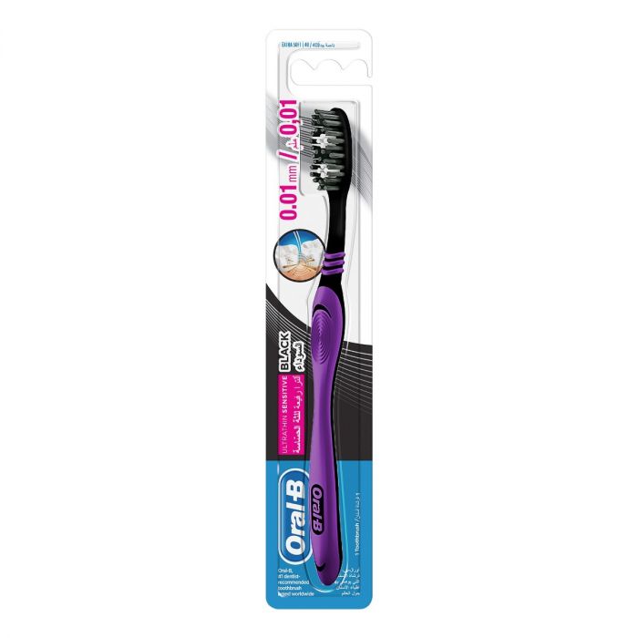 تتميز فرشاة الأسنان ألترا ثين بلاك من أورال بي اليدوية بشعيرات فائقة الرقة تساعد على توفير تنظيف ناعم وشامل.