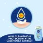 • تعمل التركيبة اللطيفة الغنية بالكلانديولا على تنظيف جلد الطفل وشعره برفق، وتحافظ على توازن درجة الحموضة pH في فروة الرأس.