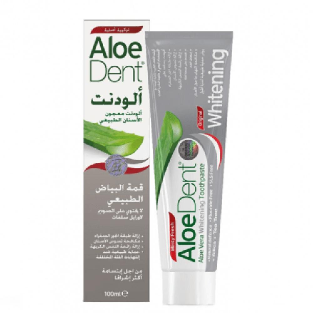 تمتع بأسنان بيضاء مع معجون الأسنان آلو دنت بخلاصة الصبار، الذي يتميز بنكهة طبيعية. يعمل معجون الأسنان آلو دنت على تبييض الأسنان التي يتغير لونها بسبب التدخين والمشروبات، ويعزز صحة اللثة. كما أنه خالي من الفلورايد.