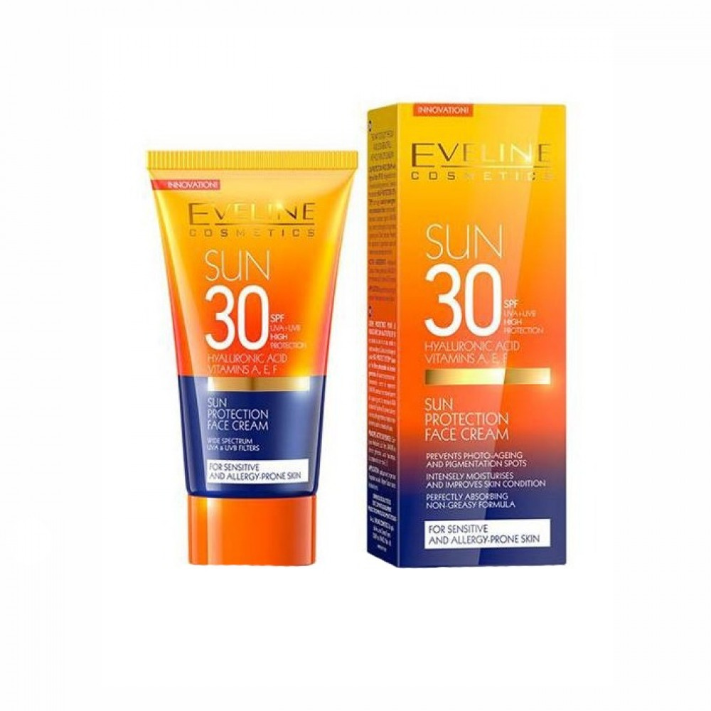 ايفلين صن كير كريم الحماية من اشعة الشمس يوفر لك درجة عالية من الحماية من اشعة الشمس بمعامل حماية 30 لتستمتعى بأشعة الشمس دون التعرض لخطر الحروق والاشعة الضارة. يرطب البشرة ويساعدها على مقاومة علامات التجاعيد والجفاف. يحمى البشرة من تكون التصبغات والاماكن الداكنة.